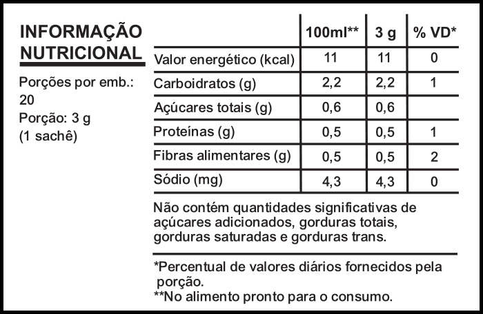 Um sachê por xícara Despeje 100 ml de água quente e misture bem. Pronto para servir